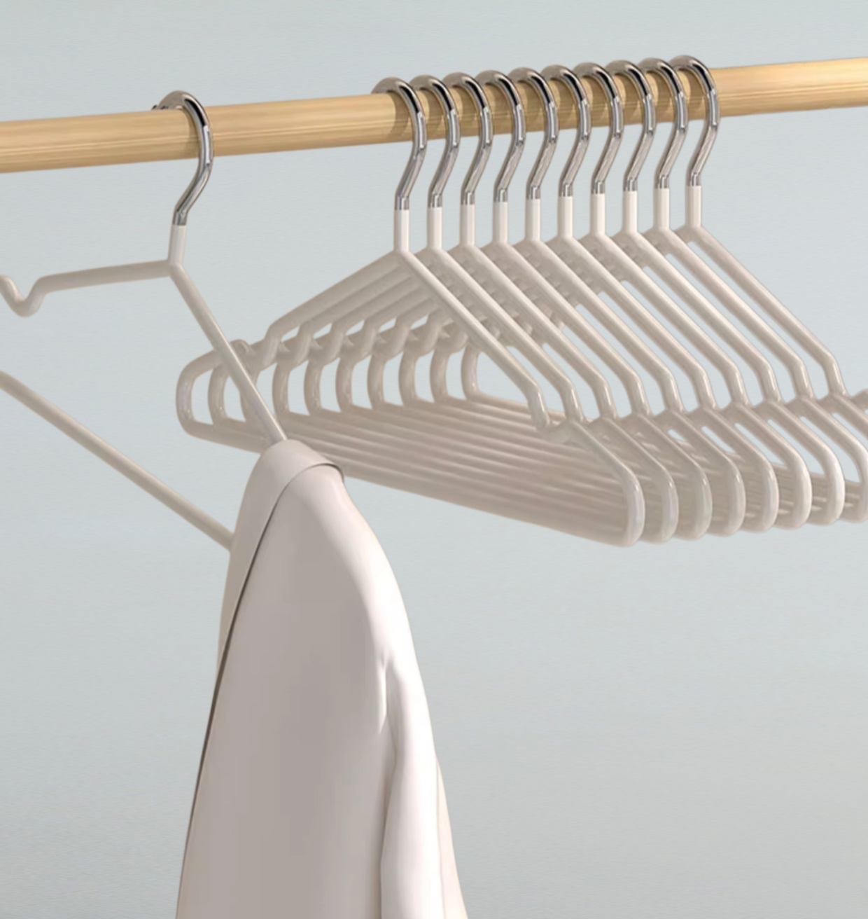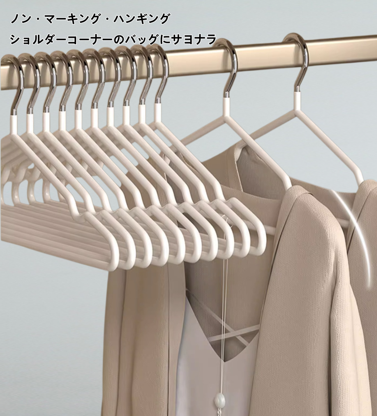厚手対応で変形しにくい滑り止め仕様。寮や家庭で使える多用途ハンガー。デイリー使いに最適。